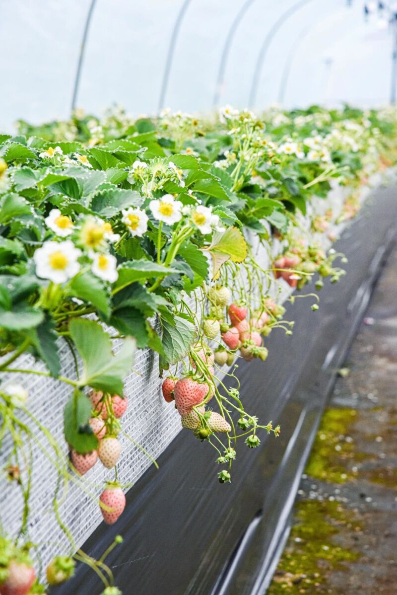 “立架高栽是一種新的栽培模式,不用彎腰,省工省力、清潔輕便、綠色高效。”徐洪介紹,傳統栽培草莓的土壤中容易滋生病菌,發生土傳病害。立架高栽采用的是專用草莓種植基質,杜絕了土傳病害的發生。園內草莓苗自帶營養基質,可減少病害發生的可能。此外,還在草莓葉表面均勻鋪撒一些細小的木屑,木屑中混入了肉眼看不到的捕食螨。利用捕食螨“以蟲治蟲”,減少了農藥的使用。 周康偉介紹,草莓大棚里采用了水肥一體機,將水和營養液通過滴灌系統,均勻送入種植基質,節水節肥節約人力,還能科學地給每棵植株提供均衡營養,使草莓的生長發育始終處于最佳狀態,促進果實品質的提高。