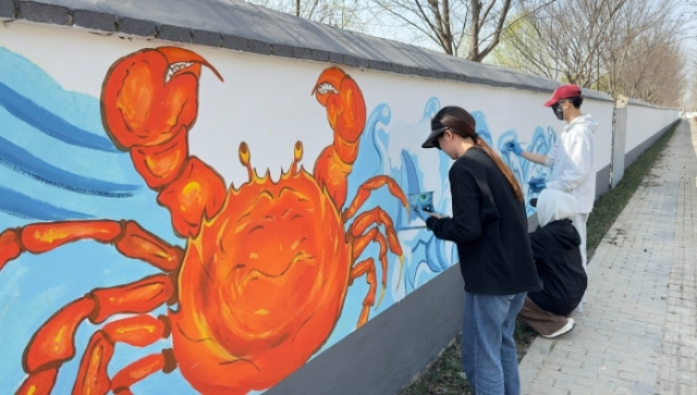 泰州學院美術學院教師殷衛霞介紹說,本次創作主要向遠方來客展示姜堰,創作主題圍繞人文景觀和姜堰特色,我們師生團隊一起完成。時間緊,任務重,20多名學生加班加點,從設計到繪畫,希望通過墻繪為姜堰旅游產業添磚加瓦,為姜堰城市美化做一份力所能及的貢獻。 小楊人家作為溱湖灣特色田園鄉村示范區的重要陣地,泰州學院美術學院的學生將村莊房屋老舊的白墻變成一張張生動的畫布,在色彩斑斕、創意十足的墻繪里融匯櫻花、觀光休閑、農耕文化等元素,結合小楊社區打造特色田園鄉村的亮點做法,打造小楊人家“網紅墻”,實現“村莊顏值”“精神文明”“鄉村旅游”三提升。