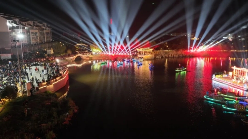 近日,位于興化市的千年古鎮沙溝,人如潮,燈如晝,“2024沙溝大型彩妝游走燈會”如期舉行,“陸上+水上”、傳統與現代相結合的燈會,營造出一片光影空間,點亮了當地的文旅經濟。