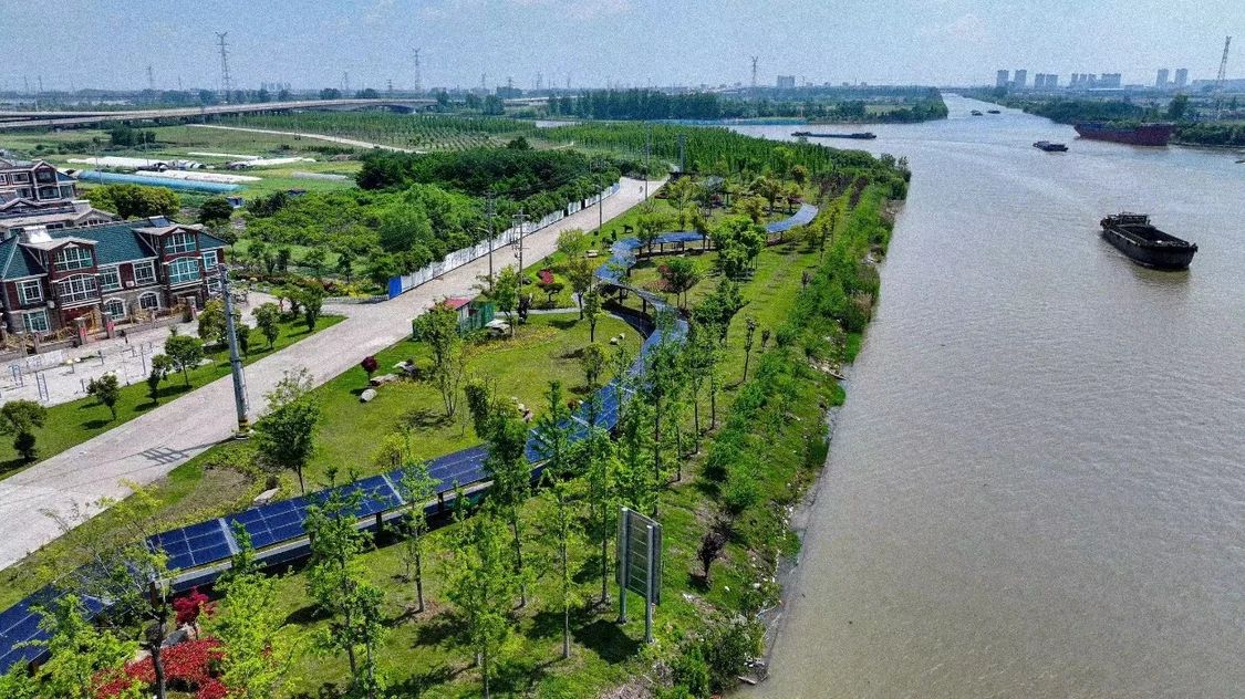 百舸生態(tài)園原址是一片內河船舶制造集聚區(qū),機器設備多,噪音大,灰塵也大,曾為當?shù)丨h(huán)境帶來沉重負擔。 2019年,海陵區(qū)率先開展非規(guī)造修船企業(yè)“三治”行動,隨之,船廠集聚區(qū)的復綠行動也拉開帷幕。數(shù)年間,海陵區(qū)投入1.8億元,關停38家造修船企業(yè),并開展土壤污染調查和生態(tài)修復,建成百舸生態(tài)園。 整治后,園內綠化苗木近2萬株,草皮約20萬平方米,40萬平方米的沿河風光帶四季有景、風光宜人,讓沿岸數(shù)百戶居民近水更親水。 夜幕降臨,一條盤踞于此的“巨龍”閃著暖色的光。彩虹光伏長廊采用“自發(fā)自用、余電上網(wǎng)”模式,年發(fā)電量可達18萬度左右,每年可節(jié)約標準煤量64.98噸、削減二氧化碳排放量238.32噸,實現(xiàn)了運河、綠地、民居、長廊和諧共存,繪就了一幅美麗的清潔能源新畫卷。 當昔日臟亂的船廠被一片綠意覆蓋,光伏走廊點亮新晉“網(wǎng)紅打卡地”,“新質生產(chǎn)力就是綠色生產(chǎn)力”在海陵區(qū)找到了鮮活注解。 生態(tài)向綠,產(chǎn)業(yè)更要向新。 在新舊動能轉換的大潮中,海陵區(qū)原有的化工企業(yè)、非規(guī)造修船企業(yè)紛紛退出歷史舞臺。與此同時,林海、春蘭等一批知名優(yōu)勢“老企業(yè)”煥發(fā)“新生機”。林海集團跨界轉型,利用老廠房,打造瑞力·泰渡雙創(chuàng)街區(qū);春蘭集團新建年產(chǎn)15GWh高性能鋰離子電池項目,盤活老廠區(qū)、形成新產(chǎn)業(yè)、激活新動能。