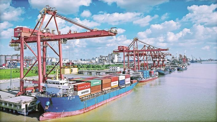 7月16日,在姜堰港,隆基樂葉光伏公司通過ICT(內陸集裝箱碼頭)業務模式,將38個大柜從泰州運往上海港,不到6小時就靠泊。作為泰州市內河第一港開港的優力博國際港務(姜堰港),于今年3月啟動ICT項目。該項目不僅為客戶節約物流運輸成本,還能助力客戶及時交付訂單。與今年3月前相比,駁船靠泊效率提升了五六倍。得益于此,今年上半年,該港集裝箱吞吐量同比增長71.09%。 “就全市來說,今年上半年集裝箱吞吐量達到17.7萬標箱,同比增長10.8%,而內河集裝箱同比增長82.4%,增速排名全省第二。”泰州市港航事業發展中心相關負責人說。 作為宏觀經濟的“晴雨表”,上半年泰州市港口運行的態勢迅猛,彰顯了積極的經濟發展信號。成績的取得,得益于泰州市堅持把沿江港口高質量發展作為“水運江蘇”泰州建設的重要牽引和突破口,瞄準新目標,實現新跨越。 除了已建港口高效運轉、持續發力外,泰州市續建的永安一二期水域部分、永益華元碼頭水域部分、大明物流碼頭水域部分、深國際物流中心二階段等4個港口工程項目已完成交工驗收和部分專項驗收。此外,今年新開工的興化內河港江蘇興達配套化工碼頭工程主體已完成建設。