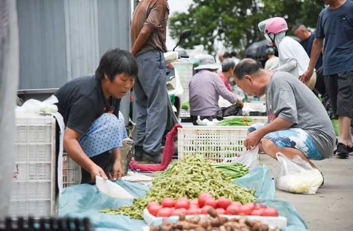 “螺螄降價賣啦。”“早上剛摘的新鮮蔬菜,青菜、白菜、番茄......”清晨四點,晨曦微露,位于泰州市海陵區迎江橋南側的“潮汐攤位”已經熱鬧起來,周邊農戶載著貨物陸續過來,支起攤位、擺放物品,銷售自家的農產品。