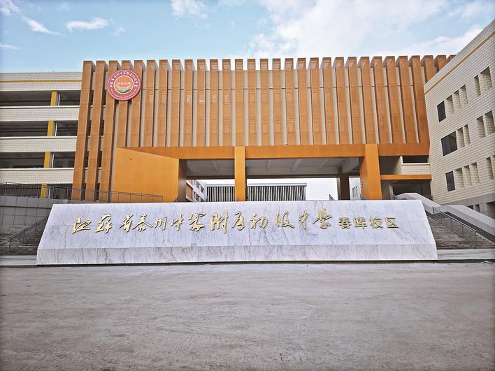 “作為新學校,春暉校區從建設以來就受到了市民的關注,我們也希望通過學校、家長和學生的共同努力,打造成‘老百姓家門口的好學校’。”省泰中附中副校長顧春寶說,目前學校有初一年級13個班、600多名學生,40名教師均來自省泰中附中鳳凰校區。學校實行“一校兩區,一體管理”的辦學模式,兩個校區的初一年級老師一起備課、一起教研。學校硬件設施先進、校園環境一流,配建有錄播、書法、創客、舞蹈教室和心理輔導室等,并建有全市首個地下智能接送系統。 省泰中附中春暉校區是泰州市立足于推進義務教育優質均衡發展實施的重要工程,也是落實“十四五”城區中小學布局和建設規劃、有效化解城區“大校額”“大班額”問題、策應“一軸一核三極三城”城市發展藍圖、滿足群眾共享優質教育資源的具體舉措。