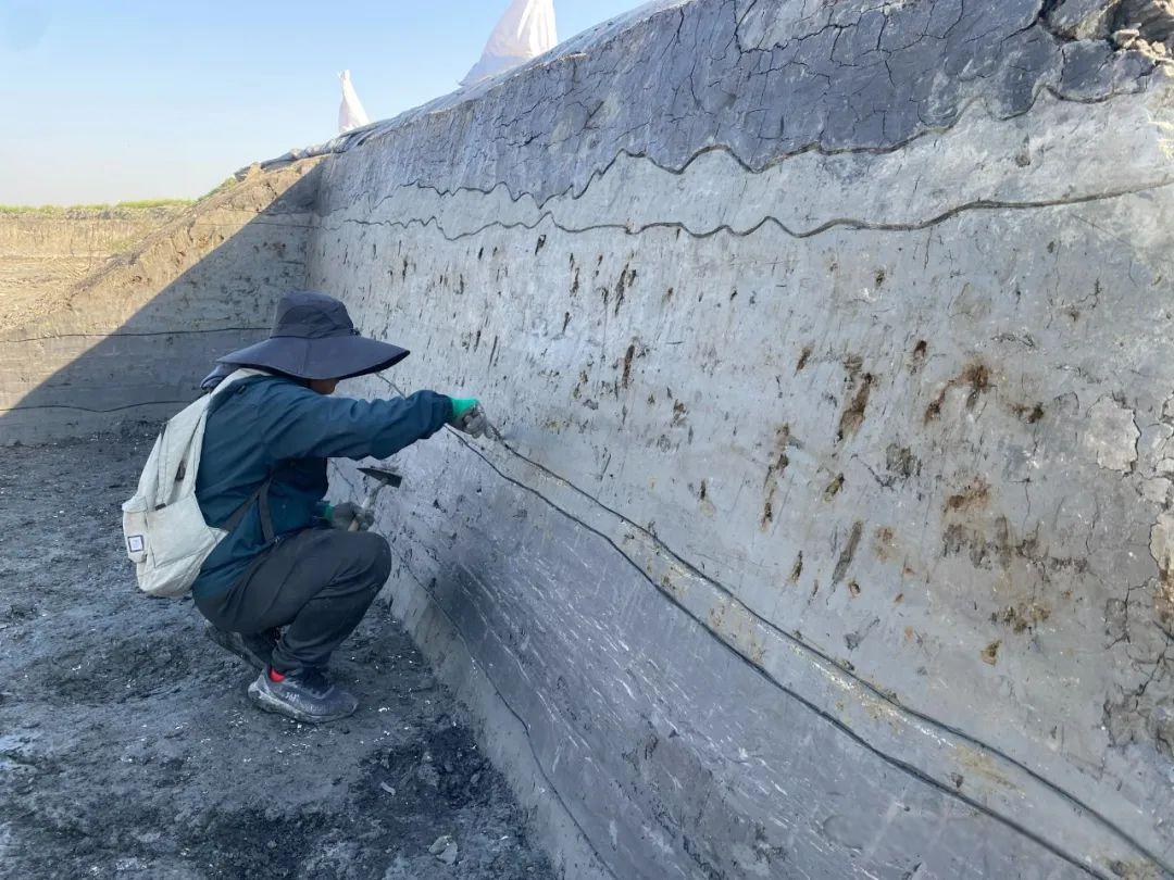△考古人員工作照 據(jù)介紹,位于興化市千垛鎮(zhèn)草王村的草堰港遺址,面積8萬(wàn)余平方米,主體年代距今7000年前后。2022年底開始,南京博物院、江蘇省文物考古研究院先后主持對(duì)其進(jìn)行考古發(fā)掘,2024年轉(zhuǎn)為主動(dòng)性考古發(fā)掘。
