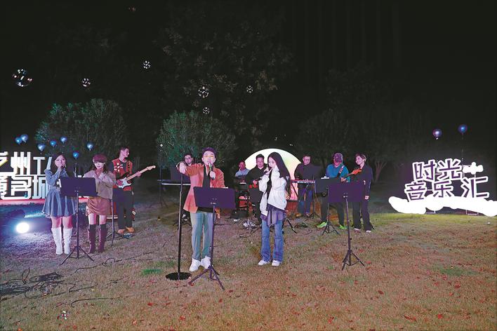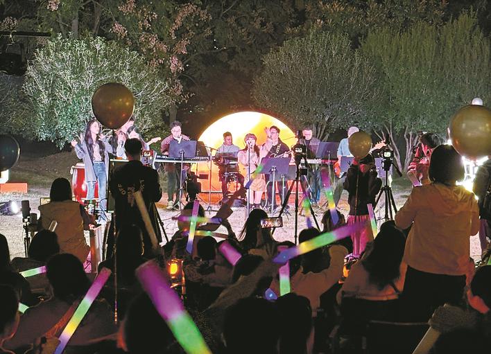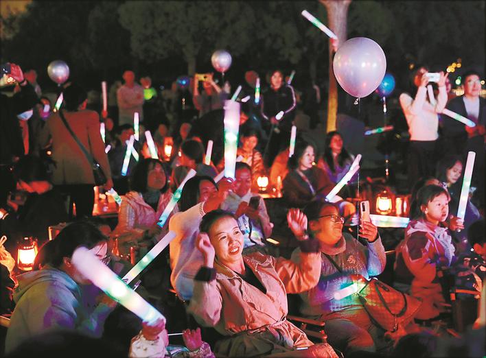 臺(tái)上,年輕的歌手和樂手盡展才華;臺(tái)下,座無虛席,既有遠(yuǎn)道而來的樂迷,也有散步路過的附近居民。大家或手舞熒光棒,跟著音樂一起歌唱,或手持手機(jī),記錄下精彩瞬間,充分享受音樂帶來的松弛感。“沒想到在家門口也能欣賞到音樂會(huì),氛圍很嗨,超級(jí)治愈!”00后上班族小于說。