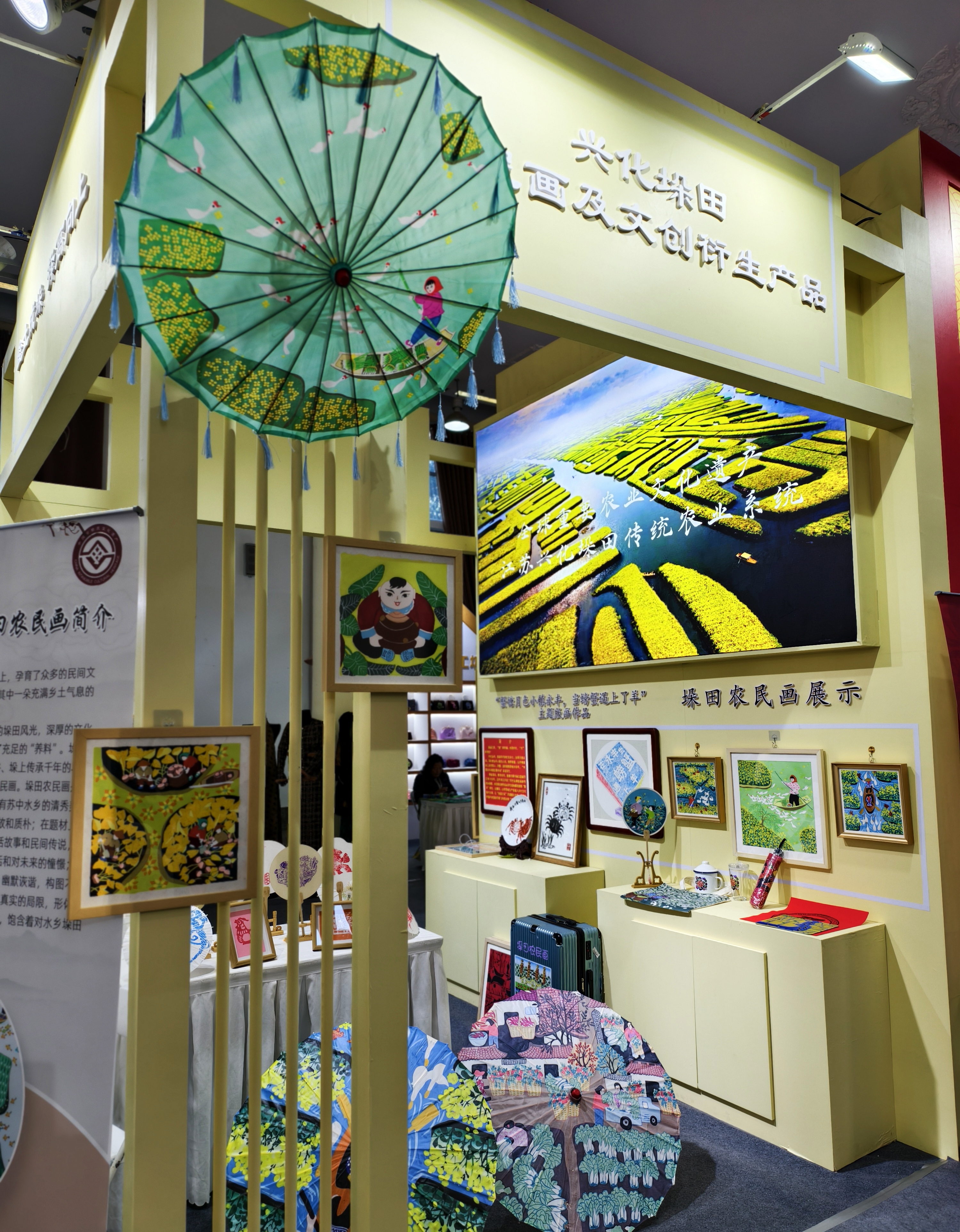一幅幅農民畫,展現全球“農遺”的旖旎風光、鄉村振興的美好圖景;手提袋、搪瓷缸、手繪團扇、流蘇傘等,一個個農民畫衍生文創產品,讓參觀者愛不釋手……11月21日,在北京全國農業展覽館內,興化垛田農民畫及其衍生文創產品一經亮相,就吸引了眾人駐足欣賞。