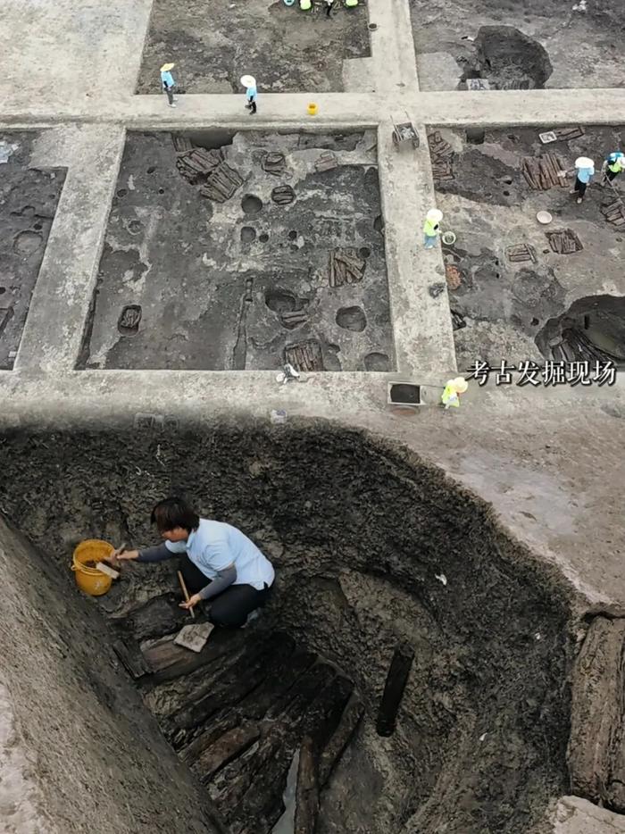2021年4月,一位垂釣者在草堰港釣魚時,發現村民深挖土地翻出大量陶片、鹿骨等,立即向文物部門報告,由此,一座沉睡地下7000年的古遺址被發現。7000年,這是什么概念?這個時間跟中學課本上河姆渡文化、仰韶文化的初始時間差不多,比良渚文化早了將近2000年。 記者看到,工作人員清理出來的席子類文物,編織方式跟現代生活中仍在使用的席子,基本毫無差別。據了解,席子在遺址中很常見,部分鋪在灰坑底部、邊壁,大多零散分布在地層中。7000年前,對于先民來說,席子屬于普通日用品。
