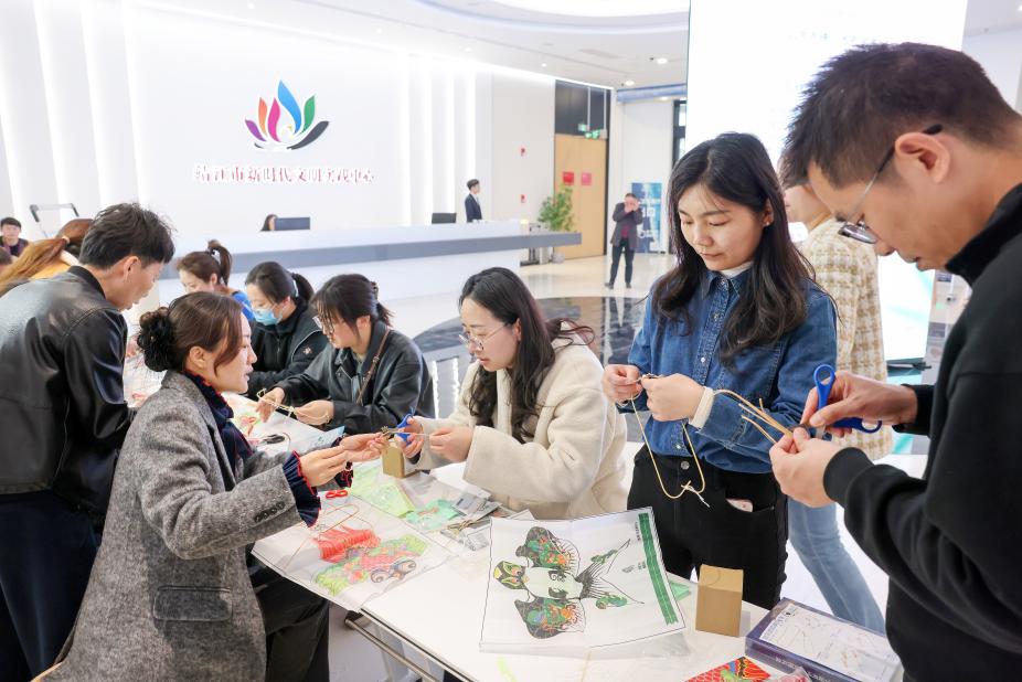 ▲圖為市民體驗做紙鳶。 詩韻清明,經典詩詞在新時代綻放光彩。在詩詞競猜互動和主題書畫交流中,市民群眾從玩中學,深刻領略了蘊含清明意象與情感的經典詩文和畫作。“‘靖’聽春聲 江潮揚帆”清明音樂詩會上,表演誦《春曉》、現代詩合誦《揚帆,在春天的潮聲里》等節目,帶著觀眾一起徜徉在詩詞歌賦間;男女聲獨唱《山水長相逢》《信仰的紅》等節目,傳遞著濃厚的家國情懷,詮釋了對新時代美好生活的謳歌與展望。