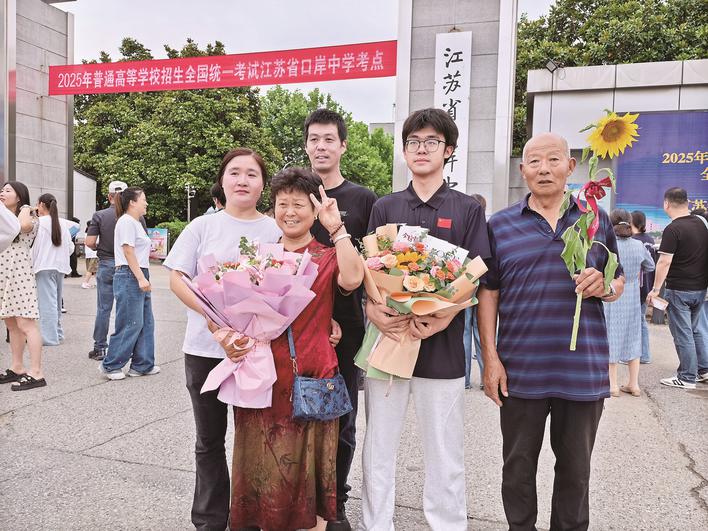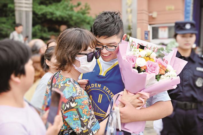 “出來了,出來了!”下午3點50分,泰州二中考點外已圍滿前來迎接的家長。在家長們翹首以盼的目光中,考生們陸續奔出校門。擁抱、獻花、微笑、掌聲、祝福交織,現場沉浸在考試結束的歡樂氛圍中。“這三年來,家長和孩子都很辛苦。今天全家人一起見證孩子完成高考,希望他未來的人生乘風破浪、閃耀光芒。”市民陳志偉動情地說。