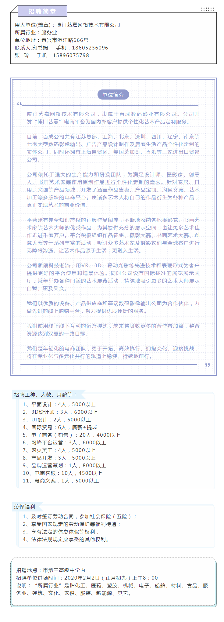博門藝嘉網絡技術有限公司招聘簡章