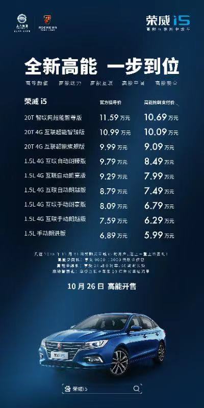 全新高能榮威i5正式上市 高能搶鮮價5.99萬起!
