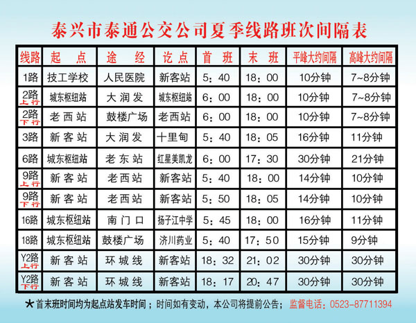 泰通公交公司班次間隔表
