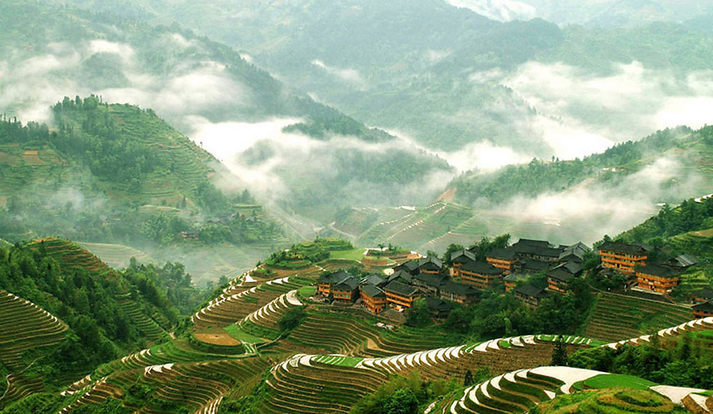 早餐后游覽【義江緣】(約90分鐘)——游客乘竹筏游覽風(fēng)景如畫(huà)的義江風(fēng)光,游客可以乘船領(lǐng)略壯族歌仙的曼妙歌聲、紅瑤傳奇的長(zhǎng)發(fā)表演、激情四射的苗家花鼓,觀賞沿岸特色鮮明的桂西北少數(shù)民族風(fēng)情景觀(木樓群、風(fēng)雨橋、水車群、谷倉(cāng)群、瑤山吊橋、高空熘索、古渡碼頭等等)。中餐后驅(qū)車赴桂林龍勝縣,游覽世界一絕——【龍脊梯田】(約4小時(shí))。感受“青蛙一跳三塊田”“一田三株禾”的奇妙景象,品味“山是龍的脊,水是龍的魂,云是飛天翼,田是登天的梯”美妙意境;整個(gè)梯田由壯、瑤民族世代耕作,已有700年的歷史,山清水秀,瀑布成群,春如層層銀帶,夏滾道道綠波,秋疊座座金塔,冬似群龍戲水,一年的四季各種神韻,讓人留連忘返。