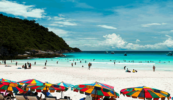 【情人沙灘】沙灘也因剛獲得小金人的李奧納多主演的電影《The Beach》在此拍攝而名聲大振,島上100來米的沙灘擁有全普吉特別細白的沙粒,又細又白的沙粒像極了胡椒面,讓你體驗人與自然融合的心神放逐!