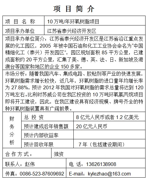 10萬噸/年環(huán)氧樹脂項目