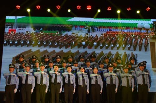 城管中隊(duì)表演的合唱《我們走在大路上》