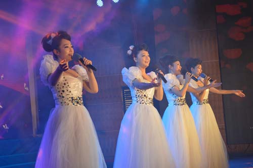 雪人組合深情演唱《唱支山歌給黨聽》 虹橋工業(yè)園區(qū)機(jī)關(guān)合唱隊(duì)表演的開場歌舞《在燦爛陽光下》,熱情謳歌了偉大的中國共產(chǎn)黨成立92年來的光輝歷程;《我們共產(chǎn)黨人好比種子》、《江山》等經(jīng)典紅歌,詮釋了“只有共產(chǎn)黨才能救中國“的永恒真理,膾炙人口的《團(tuán)結(jié)就是力量》、《紅星照我去戰(zhàn)斗》、《我們走在大路上》,歌舞《虹橋夢(mèng)•中國夢(mèng)》彰顯了洪橋工業(yè)園區(qū)廣大干群追逐中國夢(mèng)、實(shí)現(xiàn)虹橋夢(mèng)的堅(jiān)定信念和壯志豪情;雪人組合演唱的《絨花》、《唱支山歌給黨聽》,全場觀眾和泰興市第五高級(jí)中學(xué)合唱隊(duì)一起演唱的《沒有共產(chǎn)黨就沒有新中國》不斷把晚會(huì)推向高潮,激勵(lì)著廣大干群奮力拼搏,奮勇向前。