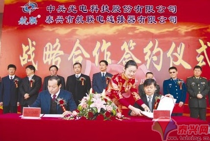 3月28日上午,市航聯電連接器有限公司與中兵光電股份有限公司簽署戰略合作協議,航聯將通過掛靠上市公司,加快發展步伐。 市領導張兆江、孫云、王中先、楊晉安、吳斌、薛晨光,中兵光電股份有限公司董事長李保平,以及部分軍隊代表參加了簽約儀式。 中兵光電科技股份有限公司是中國兵器集團重點保軍企業,以“信息化與精確打擊”為核心業務,是中國兵器集團發展最快的上市公司,目前市值超百億元。航聯電連接器有限公司是我市一家民營成長型企業,主產品電連接器通過了部隊質量體系認證,在軍品市場得到廣泛應用。這次戰略合作,中兵光電股份有限公司注資購買航聯51%的股份,同時,雙方將在資金、管理、產品技術和新項目上開展深度合作,合力將航聯電連接器迅速做大做強,并將謀求向兵器行業其它產品擴張。中兵光電股份有限公司董事長李保平表示,簽約后,中兵光電將繼續加大資金投入和項目開發力度,力求將航聯建設成為中兵光電在泰興較大規模的生產基地。 市委書記張兆江在致辭中說,這一次的成功合作,中兵光電大型軍企品牌的影響力,將對航聯今后的發展壯大產生帶動力。希望雙方積極創新合作模式、拓寬合作領域,讓航聯通過借船出海,走上技術高端化、生產集約化、管理現代化的發展之路,努力成為國內外電連接行業中最具影響力的優秀企業。泰興市委、市政府及相關部門將盡力提供更大的支持和更優的服務,使雙方的合作之路越走越寬,實現互利雙贏。 |