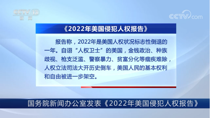 3月28日,國(guó)務(wù)院新聞辦公室發(fā)表《2022年美國(guó)侵犯人權(quán)報(bào)告》。報(bào)告開(kāi)篇指出,2022年是美國(guó)人權(quán)狀況標(biāo)志性倒退的一年。“自由燈塔”“人權(quán)衛(wèi)士”一向?yàn)槊绹?guó)政客們所標(biāo)榜,然而這份近2萬(wàn)字的報(bào)告,歷數(shù)美國(guó)人權(quán)劣跡,撕碎了美國(guó)“人權(quán)衛(wèi)士”的假面,讓我們看到“燈塔”下的陰影是如何的深沉和腐朽。 2020年6月17日,聯(lián)合國(guó)人權(quán)理事會(huì)在日內(nèi)瓦舉行的第43屆人權(quán)理事會(huì)會(huì)議上就曾探討了美國(guó)人權(quán)的相關(guān)問(wèn)題,這也是聯(lián)合國(guó)人權(quán)理事會(huì)歷史上第一次就美國(guó)人權(quán)問(wèn)題召開(kāi)緊急會(huì)議。一向自封“人權(quán)判官”的美國(guó),結(jié)果自己的“人權(quán)問(wèn)題”卻上了聯(lián)合國(guó)的會(huì)議桌,這是何等的諷刺。 “戰(zhàn)爭(zhēng)販子”——美國(guó)。報(bào)告指出,21世紀(jì)以來(lái),美國(guó)以“反恐”為名在85個(gè)國(guó)家開(kāi)展軍事行動(dòng),直接導(dǎo)致至少92.9萬(wàn)平民死亡,3800萬(wàn)人流離失所。曾經(jīng)有一項(xiàng)數(shù)據(jù)指出,美國(guó)是一個(gè)“戰(zhàn)爭(zhēng)國(guó)家”,90%以上的時(shí)間都在參與戰(zhàn)爭(zhēng)或者發(fā)動(dòng)戰(zhàn)爭(zhēng)。也無(wú)怪乎最近在美國(guó)參議院外交關(guān)系委員會(huì)預(yù)算聽(tīng)證會(huì)上,有美國(guó)民眾打斷美國(guó)務(wù)卿布林肯的講話,“別當(dāng)戰(zhàn)爭(zhēng)販子!”一位“戰(zhàn)爭(zhēng)販子”卻披著“人權(quán)衛(wèi)士”的鮮亮外衣,這又是何等的無(wú)恥。 本是同根生,相煎何太急?“自由民主”的氣息彌漫在美國(guó)的大地,“美國(guó)夢(mèng)”也歷來(lái)被美國(guó)高層們津津樂(lè)道,但是近年來(lái),隨著美國(guó)各地的一聲聲“槍響”,“美國(guó)夢(mèng)”被打得支離破碎,讓我們得以聽(tīng)見(jiàn)美國(guó)人民在“美式民主”遮罩下“我不能呼吸”的吶喊。報(bào)告指出,美國(guó)基于種族偏見(jiàn)的仇恨犯罪在2020年至2022年間大幅增長(zhǎng)。81%的亞裔美國(guó)人表示針對(duì)亞裔社區(qū)的暴力正在增加。非洲裔被警察殺害的可能性是白人的2.78倍。“黑金”選舉、種族歧視、槍支暴力、兒童貧困……“燈塔”之下劣跡斑斑。 單邊主義、孤立主義、霸凌主義……近年來(lái),只要出現(xiàn)這些名詞,背后就一定有著美國(guó)的身影。國(guó)際社會(huì)上,美國(guó)自命“國(guó)際警察”,高舉著維護(hù)國(guó)際秩序的幌子,對(duì)許多國(guó)家指手畫腳、肆意打壓,已經(jīng)成為全球安全與穩(wěn)定的最大麻煩制造者。國(guó)際貿(mào)易中,多次阻撓WTO仲裁庭法官遴選,導(dǎo)致WTO仲裁庭因人數(shù)不夠停擺;抗疫期間,拋棄國(guó)際責(zé)任和多邊規(guī)則,無(wú)理攻擊并退出世界衛(wèi)生組織;針對(duì)中國(guó),特別出臺(tái)了《芯片和科學(xué)法案》,遏制中國(guó)發(fā)展……種種行徑,充斥著美國(guó)特有的“霸權(quán)邏輯”,令人發(fā)指。 人權(quán)事關(guān)全人類的尊嚴(yán)和福祉,人權(quán)保障沒(méi)有最好,只有更好。奉勸美國(guó)的“燈塔”真正照耀下自己的人民,否則只會(huì)“搬起石頭砸自己的腳”,遭到歷史的唾棄! |