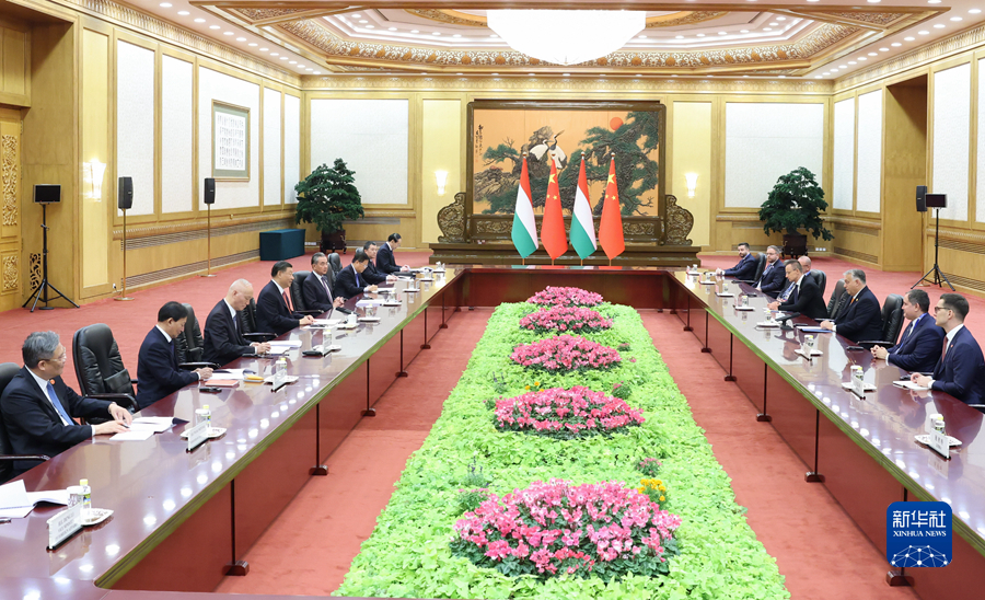 10月17日上午,國(guó)家主席習(xí)近平在北京人民大會(huì)堂會(huì)見來華出席第三屆“一帶一路”國(guó)際合作高峰論壇的匈牙利總理歐爾班。新華社記者 饒愛民 攝 習(xí)近平指出,匈牙利是最早承認(rèn)并同新中國(guó)建交的國(guó)家之一,兩國(guó)傳統(tǒng)友誼源遠(yuǎn)流長(zhǎng)。近年來,中匈關(guān)系始終保持高水平發(fā)展。雙方政治互信不斷加深,互利合作成果豐碩,人文交流豐富多彩,在國(guó)際和地區(qū)事務(wù)中協(xié)作良好,特別是攜手抗擊新冠疫情,兩國(guó)人民友誼更加深厚。匈方長(zhǎng)期堅(jiān)定奉行對(duì)華友好政策,積極支持共建“一帶一路”,歐爾班總理連續(xù)三次出席“一帶一路”國(guó)際合作高峰論壇,我高度贊賞。中方愿同匈方繼續(xù)做彼此信賴、合作共贏的好朋友、好伙伴,以明年建交75周年為契機(jī),推動(dòng)中匈全面戰(zhàn)略伙伴關(guān)系不斷邁上新臺(tái)階,續(xù)寫中匈友好合作關(guān)系的新篇章。 習(xí)近平強(qiáng)調(diào),中方愿同匈方加強(qiáng)治黨治國(guó)理政經(jīng)驗(yàn)交流,堅(jiān)定支持彼此選擇的發(fā)展道路,加強(qiáng)“一帶一路”倡議同匈牙利“向東開放”戰(zhàn)略深度對(duì)接,共享發(fā)展機(jī)遇和成果。雙方要爭(zhēng)取匈塞鐵路按期建成通車,辦好中歐商貿(mào)物流合作園區(qū),擴(kuò)大跨境電商規(guī)模,拓展信息科技、新能源產(chǎn)業(yè)合作。中方愿擴(kuò)大進(jìn)口匈牙利優(yōu)質(zhì)農(nóng)產(chǎn)品。雙方要用好互設(shè)的文化中心平臺(tái),鼓勵(lì)兩國(guó)語言教學(xué),讓中匈傳統(tǒng)友誼世代相傳。中國(guó)-中東歐國(guó)家合作符合中國(guó)和中東歐國(guó)家共同利益,中方愿同匈方一道,繼續(xù)引領(lǐng)中國(guó)-中東歐國(guó)家合作正確方向,不斷豐富中國(guó)-中東歐國(guó)家合作內(nèi)涵,助力中歐關(guān)系行穩(wěn)致遠(yuǎn)。