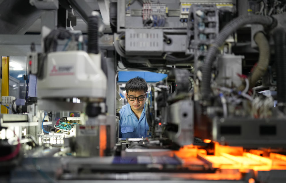 2023年8月9日,在浙江省臺州市黃巖區(qū)省級專精特新“小巨人”企業(yè)浙江公元新能源科技股份有限公司,工作人員操作全自動焊接機生產(chǎn)太陽能電池片。新華社記者 翁忻旸 攝 張北可再生能源柔性直流電網(wǎng)建成投用,每年可向北京輸送140億千瓦時的綠色電能;南方電網(wǎng)與上下游數(shù)千家供應商合作創(chuàng)新,拉動上下游近4000億元的產(chǎn)能需求;齊魯石化-勝利油田百萬噸級CCUS示范工程,每年可減排二氧化碳100萬噸……追“風”逐“日”,低碳轉(zhuǎn)型,全國各地綠色發(fā)展勢頭正強。