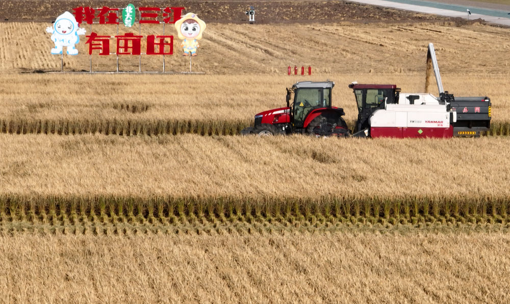 2024年5月9日,在福建省安溪縣西坪鎮珠洋村,科技特派員(中)在指導茶農使用機器科學化采收茶葉。新華社記者 魏培全 攝 “把你的貢獻就寫在大地上!”總書記叮囑,“我在福建時就抓科技特派員,現在全國都在推廣。農業技術人員就是要下沉到農村基層來,就是去干具體的出實際成果的事情,這就是你們的貢獻。” 如今,數十萬“科特派”活躍在田野一線,給農業插上科技的翅膀。 東北,祖國的大糧倉,見證中國農業的發展。 2018年9月,第一個中國農民豐收節剛過,習近平總書記從北京飛抵東北,來到黑龍江農墾建三江管理局,走進大田,察看秋收。 龍江大地,金風送爽,稻浪滾滾。建三江七星農場萬畝大地號豐收在望,10臺收割機一字排開,正在實施聯合作業。