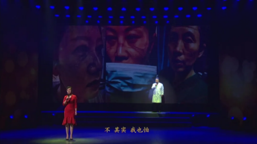 醫(yī)生: 走過荊棘,穿過鮮花, 祖國的強(qiáng)大,中華兒女萬眾一心的磅礴動力, 是我們的鋼盔鐵甲。 再大的困難,我們能攻下, 再大的風(fēng)險(xiǎn),我們也不怕, 讓患者重新?lián)碛薪】档纳?/p> 讓老百姓的生活燦如夏花, 這是我們對黨旗的承諾,信仰的火把。
