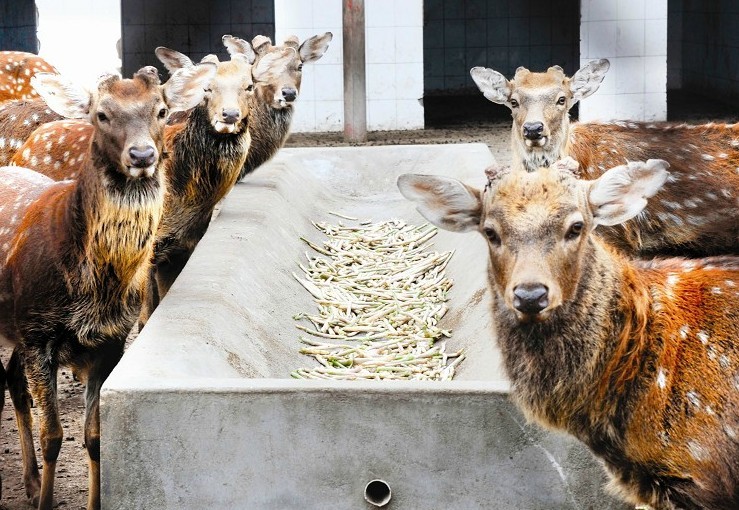 本報訊(記者 唐春成 特約記者 蔡金保 通訊員 李 進 實習(xí)生王幸君)中秋節(jié)前,市民季先生來到泰興市根思鄉(xiāng)李秀河村的廣森鹿場,購買了5000多元的鹿茸。“這兒的鹿茸新鮮、品質(zhì)好,正好用來孝敬父母。” 廣森鹿場目前存欄梅花鹿近500頭,已成為全省規(guī)模最大的梅花鹿繁育基地。 為爭配偶雄鹿常常角斗 當下正是梅花鹿發(fā)情期,飼養(yǎng)員喂食時要減料。因為公鹿養(yǎng)得太壯,容易彼此傷害;母鹿過于肥胖,日后會導(dǎo)致難產(chǎn) 走進養(yǎng)殖區(qū),飼養(yǎng)員老丁正在為一群梅花鹿喂食山芋藤。“梅花鹿對食物要求不高,平時喂些山芋藤、黃豆稈、花生藤等就可以了,這些青棵作物成本低廉,在周邊可以常年收購。”老丁說,為了保證梅花鹿營養(yǎng)均衡,每天還要給它們少量喂食由玉米、麩皮、豆粕等發(fā)酵而成的精料。 不一會兒,一大摞新鮮山芋藤被鹿群一掃而光。“食欲好說明它們很健康。”老丁說,患病的鹿都有離群習(xí)慣,而且食欲不振。 隔壁的公鹿圈舍內(nèi)傳來激烈碰撞的聲音。原來是幾只雄鹿發(fā)生角斗。老丁喝了幾聲,雄鹿方才安靜下來。“每年8月至10月,梅花鹿進入發(fā)情期,這時的雄鹿變得性情粗暴、兇猛,為了爭奪配偶,常常會發(fā)生角斗。” “這幾天已經(jīng)逐漸給它們減料。”老丁說,公鹿在發(fā)情期如果養(yǎng)得太壯,容易彼此傷害,而母鹿如果過于肥胖,日后會導(dǎo)致難產(chǎn)。 在另一個圈舍內(nèi),老丁蹲下身子仔細觀察梅花鹿糞便情況。“觀察糞便能判斷鹿的身體營養(yǎng)狀況。”老丁說,現(xiàn)在這個季節(jié),鹿糞最好是一坨一坨的,如果呈顆粒狀,說明鹿的營養(yǎng)不良,可以適當加料;如果出現(xiàn)拉稀,則說明消化不良,需要減料,并盡早消炎治療。 養(yǎng)鹿需要大量玉米稈、花生藤等作為粗料,該基地帶動了周邊種植玉米、花生達數(shù)千畝,不僅保證了養(yǎng)鹿飼料來源,也讓周邊農(nóng)戶得到了實惠。 雄鹿每年割茸兩次 采集鹿茸必須將梅花鹿麻醉,將尾部裝有紅色絨線的注射器塞入不銹鋼管一端,然后用力一吹,注射器便會如同飛鏢一樣飛出射中鹿身,并依托慣性自動完成藥劑注射 雄鹿的嫩角沒有長成硬骨時便是鹿茸。鹿茸帶茸毛,含血液,是一種貴重中藥,可滋補強壯身體,對體質(zhì)虛弱、神經(jīng)衰弱等有顯著療效。 在鹿場內(nèi),記者發(fā)現(xiàn)所有雄鹿的頭部都是光禿禿的。“這些鹿剛被割茸,一頭雄鹿每年可以完成兩次割茸。”養(yǎng)殖場負責人常明廣介紹,鹿茸生長期一般50天左右,每年5月至8月是長茸期。頭茬茸收割后,二茬茸50天后可以再次收割。 雄鹿脾氣很大,采集鹿茸必須將其麻醉。常明廣從他的“動物醫(yī)療室”內(nèi)拿出一根細細的約莫1.5米長的不銹鋼管。“這是我自己發(fā)明的‘麻醉槍’。” 將尾部裝有紅色絨線的注射器塞入不銹鋼管一端,然后用力一吹,注射器便會如同飛鏢一樣飛出射中鹿身。依托飛行慣性以及注射器上的橡皮筋拉力,注射器扎中鹿身后,能夠自動完成藥劑注射。 梅花鹿被注射過麻醉劑后,約摸10分鐘后便會昏睡。此時,需要幾名工人共同采茸:一人割茸,一人穩(wěn)住鹿身,一人用容器等血。 常明廣向記者展示了割茸用的鋸子。鋸身約30多厘米長,看上去十分鋒利。“割茸前,鋸子須用酒精嚴格消毒。鹿茸質(zhì)地柔軟,割茸時下手要輕,一般5分鐘即可收割完畢。采好后,須在10分鐘內(nèi)打解藥讓梅花鹿恢復(fù)神志,同時為梅花鹿止血。” “目前鹿茸市場價為每公斤4600元左右。”常明廣說,養(yǎng)殖場每頭雄鹿平均年產(chǎn)茸1.5公斤左右,他今年純收入有望達到150萬元。 做華東地區(qū)最大養(yǎng)殖基地 常明廣鼓勵周邊農(nóng)民養(yǎng)殖梅花鹿,并引導(dǎo)他們加盟,由他提供幼鹿、飼料、技術(shù)等,力爭使當?shù)孛坊癸曫B(yǎng)量達到1000頭以上 目前,廣森鹿場已經(jīng)成為中國畜牧業(yè)協(xié)會鹿業(yè)分會理事單位。對此,常明廣并未滿足。“規(guī)模產(chǎn)生效益。”常明廣認為,隨著經(jīng)濟快速發(fā)展以及生活水平不斷提高,人們的保健意識不斷增強,養(yǎng)殖梅花鹿市場前景廣闊。 雌性梅花鹿的經(jīng)濟效益主要來自于生產(chǎn)幼崽。目前雄性幼崽市場價每只為7000元左右,雌性幼崽3500元左右。為進一步擴大養(yǎng)殖規(guī)模,每年鹿場新生產(chǎn)的梅花鹿幼崽,常明廣一只都不賣。 在我國東北地區(qū),很多農(nóng)戶都散養(yǎng)梅花鹿。常明廣打算借鑒這一模式,鼓勵周邊農(nóng)民養(yǎng)殖梅花鹿,并引導(dǎo)他們加盟,由他提供幼鹿、飼料、技術(shù)等,力爭使當?shù)孛坊桂B(yǎng)殖數(shù)量達到1000頭以上,成為華東地區(qū)規(guī)模最大的養(yǎng)殖基地。 梅花鹿幼崽的成活率一般只有50%。近年來,在泰興畜牧獸醫(yī)專家指導(dǎo)下,廣森鹿場的梅花鹿幼崽成活率已提高至87%。“目前還只是出售鹿產(chǎn)品原料,以后還要提升產(chǎn)品附加值。”常明廣說,明年他計劃投入500萬元上馬深加工項目,生產(chǎn)鹿酒、中成藥等系列產(chǎn)品。 記者手記 人棄我取,創(chuàng)業(yè)成功的要訣 現(xiàn)在看來,廣森鹿場無疑是成功的。一年獲100多萬元純利,這是很多創(chuàng)業(yè)人的夢想。 常明廣告訴記者,人棄我取是他成功的要訣之一。2008年全球金融危機爆發(fā),東