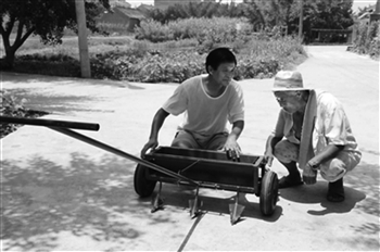 □本報記者 林念蘇 通 訊 員 封建忠 國 富 58歲的季生龍,家住泰興市濟川街道房元村一組,是泰興市北城初中的一名化學老師。 課堂上,他是循循善誘的良師;講臺下,他還是一個“發明家”。近幾年來,季生龍利用業余時間,發明了十多種小型農機具。其中,由他發明的手持水稻播種機,獲得了國家專利證書,并已在本地及河南、四川、湖北等地被推廣使用。 知農民苦,萌生發明念頭 季生龍家在農村,每逢節假日、雙休日,他都得幫老伴一起打理自家的兩畝地。 2006年以來,泰興農村推廣直播稻技術,大大減輕了農民的勞動強度。但由于是人工播種,秧苗常常出現稀密不均的現象,一畝地種完了往往還得“返工”,重新將過密的秧苗移栽到苗稀的地方,這樣一折騰,一畝地又得多耗費2至3個工日,且有時候還會損傷秧苗。 腳踩淤泥,頭頂烈日——一天下來,年輕力壯的小伙子都疲憊不堪,年近花甲的老季更是累得腰酸背痛,苦不堪言了。“能不能發明一種既省力、播種又均勻的水稻播種機呢?”季生龍萌生了這樣的想法。 一個整天和化學試劑打交道的化學老師,要轉行當“發明家”,能行么?季生龍較上了真,他把全部的業余時間都投入到發明中。一次出差,他從拉行李箱得到啟示:手持水稻播種機,是不是可以在人工手扶犁上加個裝稻種的漏斗,一邊犁地一邊下種?有了這樣的設想,季生龍先后畫了數百張設計圖紙,一次次地失敗,又一次次地修改。經過反復試驗,2010年5月,季生龍拿出了播種機樣機。 多次改造,省事省力省錢 季生龍發明了水稻播種機,這在鄉里成了一個大新聞,鄉親們都趕過來看熱鬧。機器看起來小巧玲瓏,這小玩意兒真的能行么?“實踐是檢驗真理的唯一標準嘛!”季生龍呵呵一笑,裝上稻種推著播種機就往大田里去。 1米,2米……在大田里,季生龍推著播種機走了四五米,大家都驚呼:“嘿!這播種機還真管用!使起來毫不費力,播下的種子又均勻。”同組的村民季華東和季華明也試了一下,一人一機1天種了十多畝地——這下,大家都信服了。 季生龍發明播種機的消息很快像長了翅膀一樣,連鄰村的農民們都爭相前來觀看。為方便更多的鄉親們,季生龍先制作了4臺樣機,免費贈送給本村農民試用。在使用過程中,針對大家反饋回來的信息,季生龍又對播種機進行了多次改造。 2011年,季生龍向國家專利局申請了發明專利。 “這兩年,我家一直使用這種水稻播種機。由于播種均勻,出苗后不需要再去密補稀,一畝地比從前要省兩三個工日。”季華明說,不僅如此,用播種機播種的田,每畝還節約兩三斤稻種、省去30多元的機械蓋種費;由于長出的秧苗透風透光,每畝田可以少施20多斤尿素,畝產量能凈增150多斤。” 觸類旁通,教師變成“全能手” 手持水稻播種機發明成功后,季生龍對于發明農機的興趣更是一發不可收了。他觸類旁通,又相繼發明出深受農民歡迎的手持小麥播種機、手持油菜播種機、挖墑清土犁和用于收獲花生、馬鈴薯、芋頭等塊根類植物的多功能挖掘叉、秧繩自動收放器等。 幾年來,季生龍不僅自學學會了車工、鉆床工、電焊工等多種技能,而且還學會了木工活兒。除了“發明家”,他又主動當起了村里的“修理師”,每逢鄉鄰們刀柄斷了,銅勺壞了,火鉗短了,只要找上門來,他都樂意幫助。鄉親們使用的鐵鍬、剪子、刀具鈍了,他也總是用自己的打磨機幫助打磨;他還利用廢舊洗衣機上的電動機,制作了兩臺鼓風機,免費借給村民們揚谷。 |