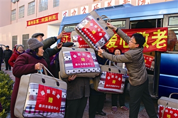 (記者 葉桂華 通訊員 葉余華 王 榮)現下,已進入數九寒冬。為確保敬老院老人安全溫暖過冬,泰興市12月27日舉行了“民政惠民生、福彩送溫暖”大型公益活動,1000多床嶄新棉被分發至各鄉鎮(街道)敬老院,給老人們送去溫暖。 在泰興市區九久樂養老院,該市民政和福彩中心的工作人員開著中巴車,送去了近100床棉被。今年70多歲的季克信老人高興地打開嶄新的棉被,拉出來給記者看:“顏色真好看,質量又好。冬天到了,能收到這樣的禮物,真的是很高興!”自2000年電腦福利彩票在泰興銷售以來,該市每年都舉行“扶老、助殘、救孤、濟困”福彩公益活動。2011年,民政、福彩中心拿出200多萬元,用于鄉鎮(街道)敬老院生活設施改造;2012年又出資400多萬元,改善社區和新農村建設;今年又先后組織福彩公益金關愛留守兒童和殘疾兒童等公益活動。