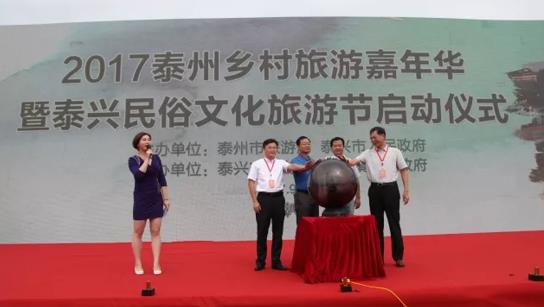 | 9月23日,2017泰州鄉村旅游嘉年華暨泰興民俗文化旅游節在泰興市黃橋鎮祁巷村小南湖景區啟動。江蘇省旅游局、泰州市人民政府、泰興市人民政府、泰州市旅游局及相關涉旅部門領導、省內各地級市旅游局負責人、泰州各市(區)旅游局負責人、泰興市級相關部門、泰興各鄉鎮負責人以及省內外各有關旅游企業(單位)500余人參加了啟動儀式。