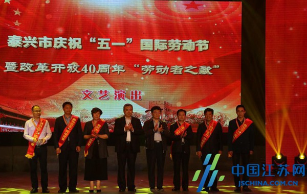 中國江蘇網(wǎng)4月28日泰州訊(夏秋 季兵)4月27日,泰興市舉辦慶祝“五一”國際勞動節(jié)暨改革開放40周年“勞動者之歌”文藝演出,來自該市各行各業(yè)的勞動者和建設(shè)者們歡聚一堂,共慶“五一”國際勞動節(jié)。慶祝會上,泰興市領(lǐng)導(dǎo)為江蘇省五一勞動獎?wù)芦@得者,泰州市五一勞動獎?wù)芦@得者以及30名新時期泰興工匠授獎。