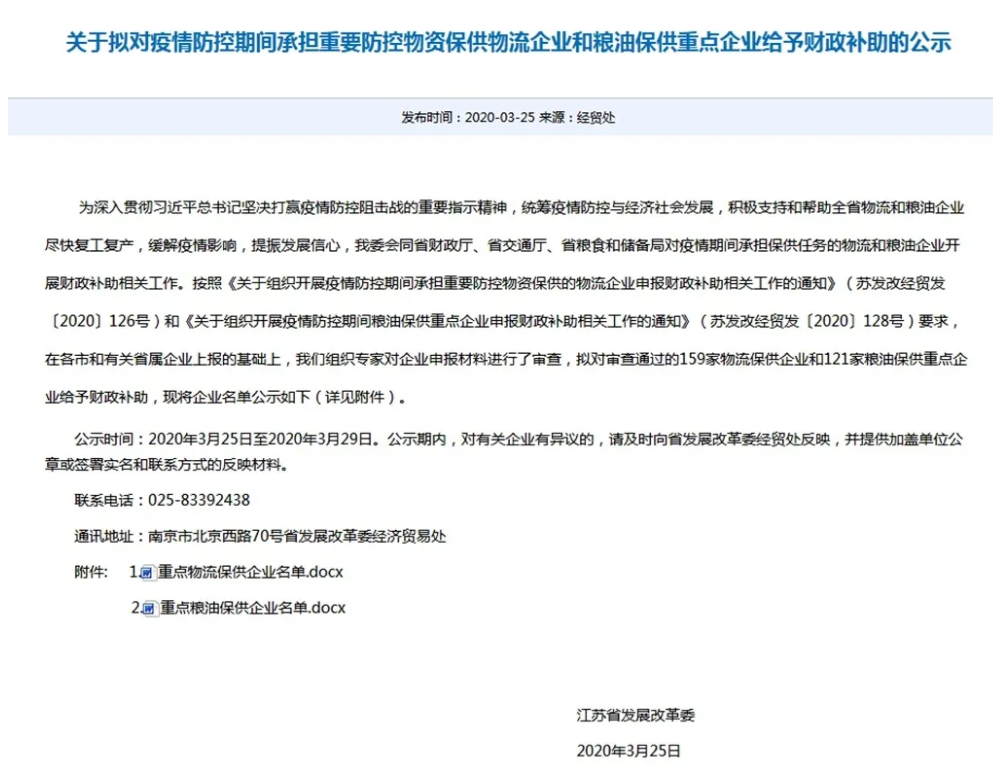 日前,泰興市發(fā)改委積極向上爭取財政補助政策,組織本市在疫情防控期間承擔重要物資保供的6家糧油企業(yè)和1家物流企業(yè)申報省級財政補助。截至3月29日,全市上報的7家企業(yè)均通過省發(fā)改委審核及公示
