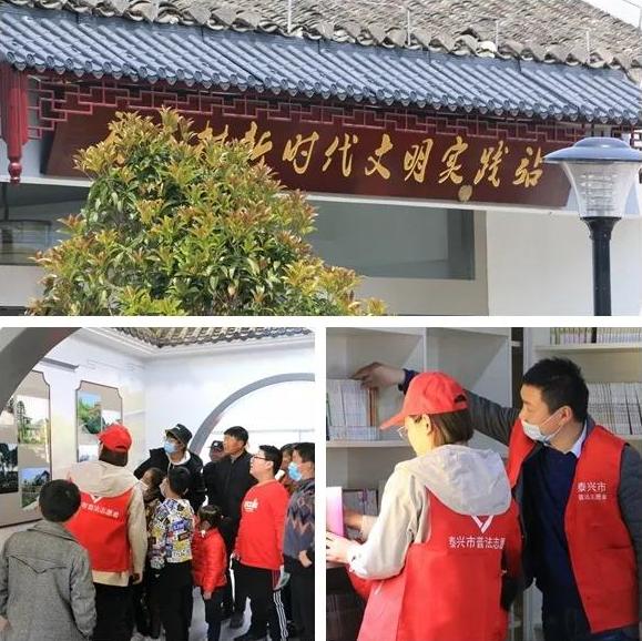 紅色—文化+普法: 上午10點,在泰興市黃橋鎮祁巷村,普法志愿者以導游的身份,帶領青少年,參觀了黨建教育館,還開展模擬法庭等活動,將法制文化融入紅色旅游中。這樣的方式,讓小朋友們樂在其中,學在其中。