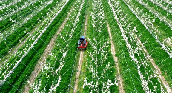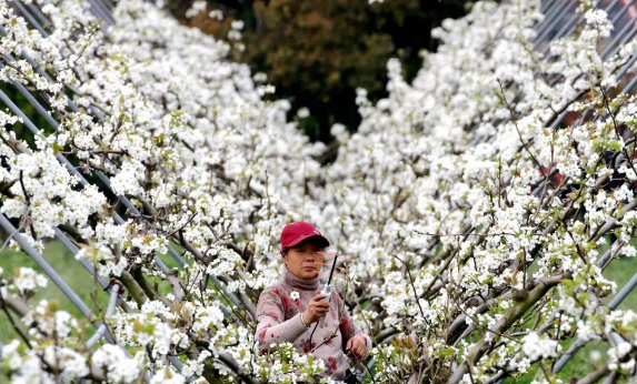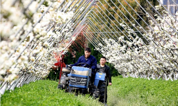 忽如一夜春風來,千樹萬樹梨花開,泰興市新街鎮一派田園好風光,果農們正忙著疏花、套袋和授粉。江蘇洋宇生態農業有限公司,培育千畝梨園,栽植百畝桃樹,萬頭豬場肥水有了去處,優良品種的桃樹梨樹,又將結出富民的碩果。