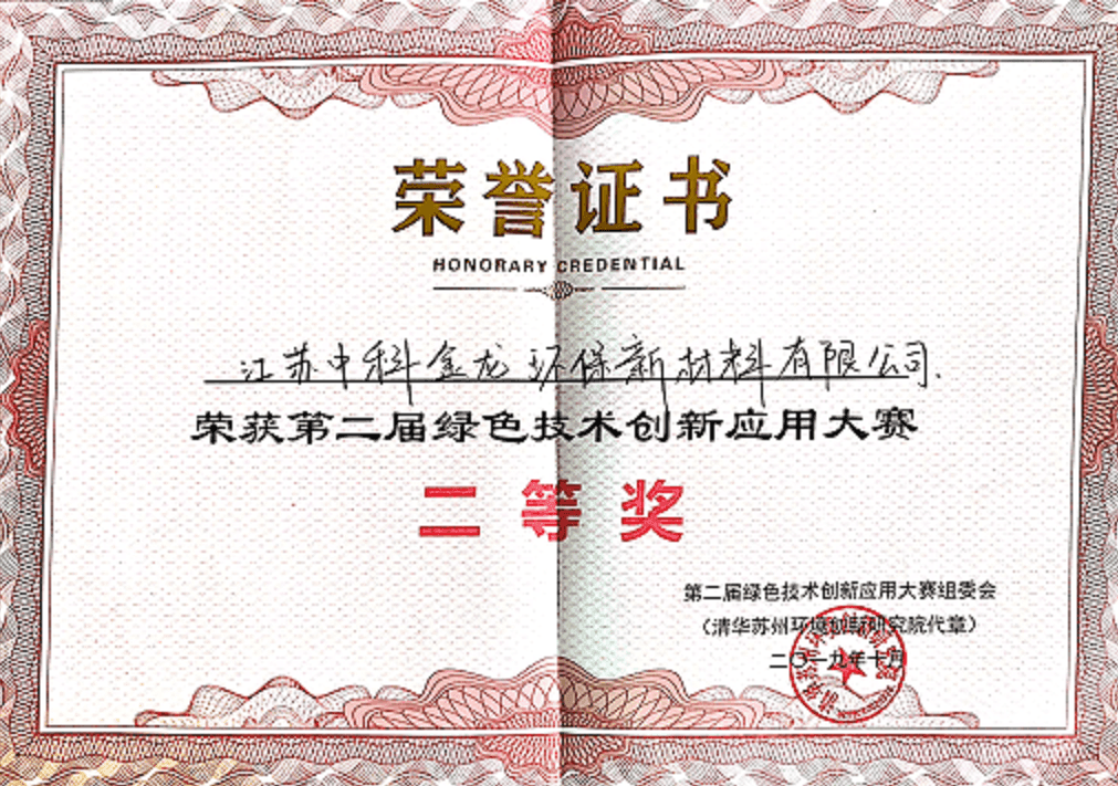 • 2018.8獲得江蘇省循環經濟科技進步二等獎
