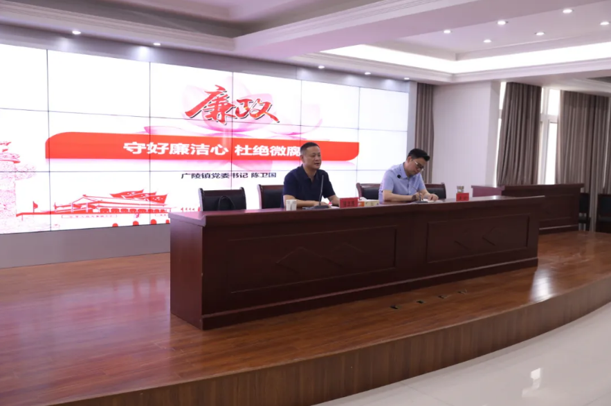 鄉黨委書記丁忠強為全體機關干部、村黨總支書記、村主任上專題廉政黨課,從牢記黨的宗旨、筑牢思想防線、自覺服從大局、強化制度約束、暢通信息渠道、嚴肅執紀問責等六個方面教育黨員干部要廉潔自律、慎微慎獨。 廣陵鎮