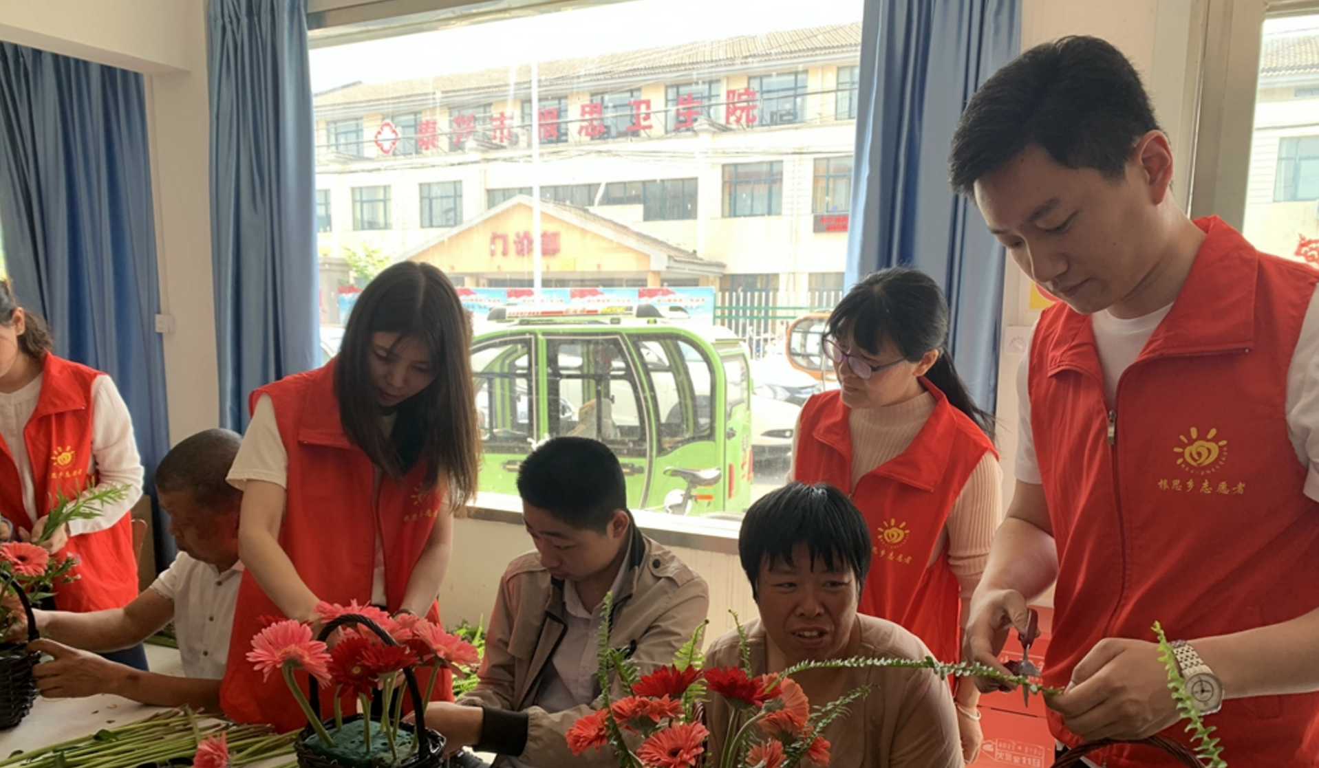 光線交匯,合作融合展新意。根思鄉(xiāng)“一米陽光”志愿組織吸納專業(yè)能人,各職能科室和條線聯(lián)動(dòng)合作,致力開展精準(zhǔn)豐富、有效規(guī)范的服務(wù)項(xiàng)目。“普法+就業(yè)扶貧”。井坔村文明實(shí)踐志愿隊(duì)扶“智”與扶“志”結(jié)合,聯(lián)合鄉(xiāng)工業(yè)集聚區(qū)和泰興市農(nóng)副產(chǎn)品批發(fā)市場(chǎng),開設(shè)就業(yè)創(chuàng)業(yè)服務(wù)項(xiàng)目,3家個(gè)體工商戶成功創(chuàng)業(yè),20余人參加工作,為省文明村再添經(jīng)濟(jì)活力。“助殘+心理疏導(dǎo)”。5月20日,鄉(xiāng)殘疾人之家舉辦了主題活動(dòng),殘疾人朋友們共同制作愛心花籃,親手贈(zèng)送給關(guān)心愛護(hù)自己的志愿者和抗“疫”一線的鄉(xiāng)衛(wèi)生院醫(yī)護(hù)人員。