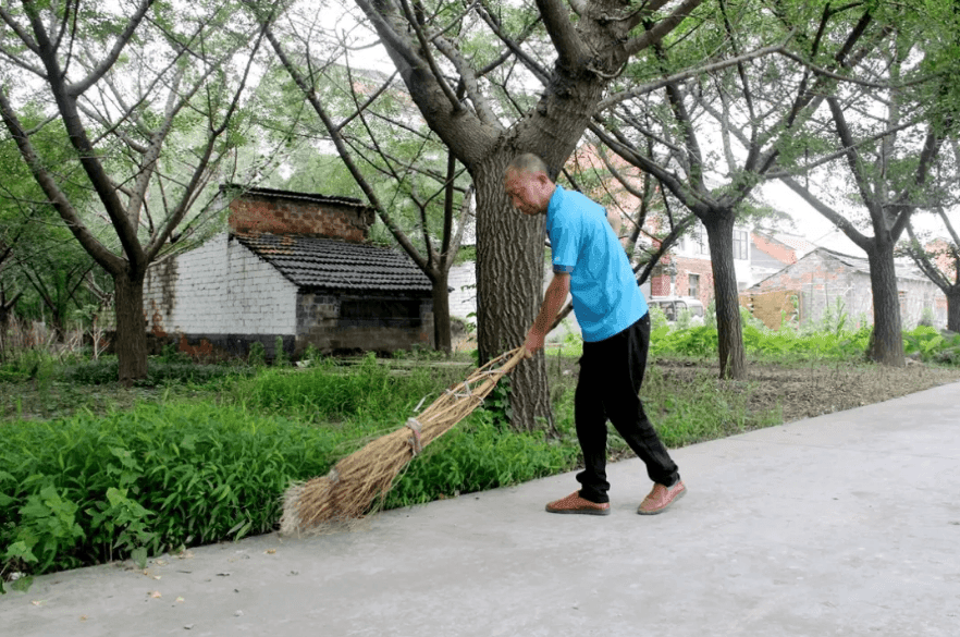 73歲的高伯喬正和同事們對鎮工業集聚區道路進行清掃,此外,村里的生活垃圾及村莊六位一體工作也由他們大包負責。