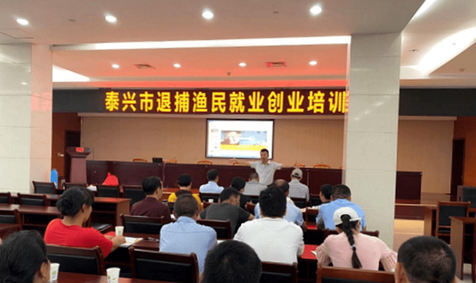 “今天的培訓班,讓我們了解到再就業方面的優惠政策,學到了一些創業知識和技巧,受益匪淺。”江蘇泰興濱江鎮退捕漁民陳某說,“上岸”的他準備發展養殖,進行“第二次創業”。
