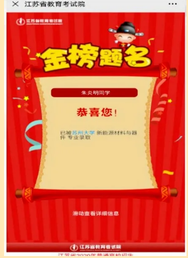 他雖聽力有障礙,但絲毫不影響他追夢的腳步。多年來,他超越障礙、自強不息,努力去實現自己的夢想。今年,他以388分的成績,被蘇州大學新能源材料與器件專業錄取,實現了211大學夢。他就是來自江蘇省黃橋中學的準大學生朱炎明。