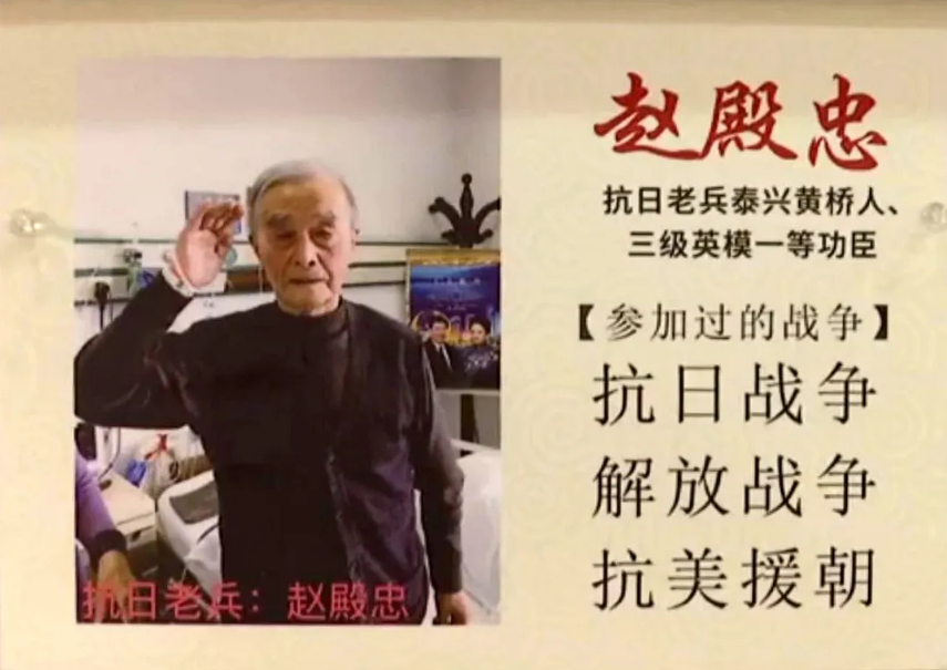 敵人的飛機向趙殿忠堅守的陣地整整轟炸了半個多小時,成噸的炮彈傾瀉在山頭上,整個陣地變成了一片火海。一直到12月28日下午兩點,趙殿忠和戰士們打退了敵人5次瘋狂的反撲,全連最后只剩下5人。 在這片剛剛惡戰過的焦土上,在冰天雪地里,趙殿忠所在連的150多位戰士永遠地躺下了,他們在激戰中、在寒冷和饑餓中死去。 打退敵人5次反撲后,趙殿忠帶領僅存的4名戰士從陣地上撤了下來。楊根思擔任連長的三連奉命堅守小高嶺陣地。楊根思帶領戰士打退了敵人一次又一次進攻,直到打完最后一顆子彈,面對沖上來的40多名敵人,楊根思抱起一包5公斤重的炸藥包,拉響了導火線向敵人沖去,與敵人同歸于盡,壯烈犧牲。 因為在這次戰斗中,趙殿忠和楊根思的頑強戰斗,從而贏得了時間,保證了大部隊的總攻勝利。趙殿忠在回國后,被授予“三級戰斗英雄”稱號,他所在的連被授予“一等功臣連”。 從地主家逃出,到泰興獨立團當通訊員 趙殿忠1925年出生在江蘇省泰興市黃橋鎮北邊申家莊的一個貧苦農民家庭。 1944年秋,新四軍來到黃橋北邊的農村進行休整,一連住了好幾天。趙殿忠非常佩服新四軍,便產生了參加新四軍的念頭。 1945年1月,他偷偷地從地主家逃出來,到泰興獨立團反攻營當通訊員。1945年11月,蘇中教導旅三團被編為新四軍一縱隊二旅六團,他仍然在營部當通信員,先后參加了攻占如皋、解放興化、突破姜堰等戰斗。 有一次,趙殿忠所在的營擔任穿插任務,進入到敵人的防區,與敵人展開了激戰。為選準突破口,沖開敵人的封鎖線,營長叫他去偵察地形。趙殿忠受領任務后,立即利用地形地物隱蔽前進,及時找到當地群眾和地下工作者,了解敵人火力分布情況,迅速繪制了地形圖。在往回趕在通過敵人封鎖線時,不幸中彈負傷。他強忍疼痛,拼命往營部跑,及時將敵情交給營首長,營長及時調整戰斗部署。他簡單包扎傷口后,又將作戰命令送到各個戰斗分隊。戰斗結束后,營部給他記了四等功。 1946年,趙殿忠所在的華中野戰軍從蘇中調往山東,配合山東野戰軍共同抗擊敵軍。