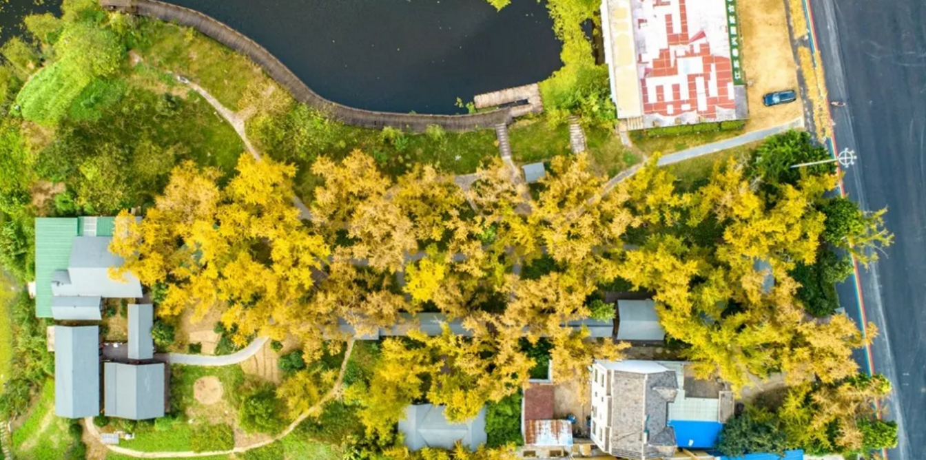 自然的村落和樹葉落黃的銀杏,構成一道亮麗的風景,泰興的秋天,也能如此浪漫,令人著迷。