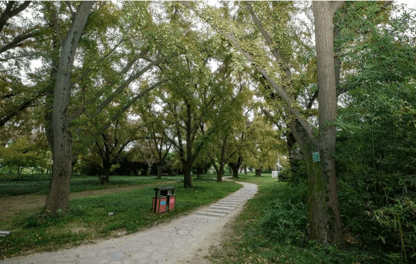 這個時節的銀杏樹,樹葉慢慢變黃,青黃相接,漫步于此,風吹葉旋,格外閑適。