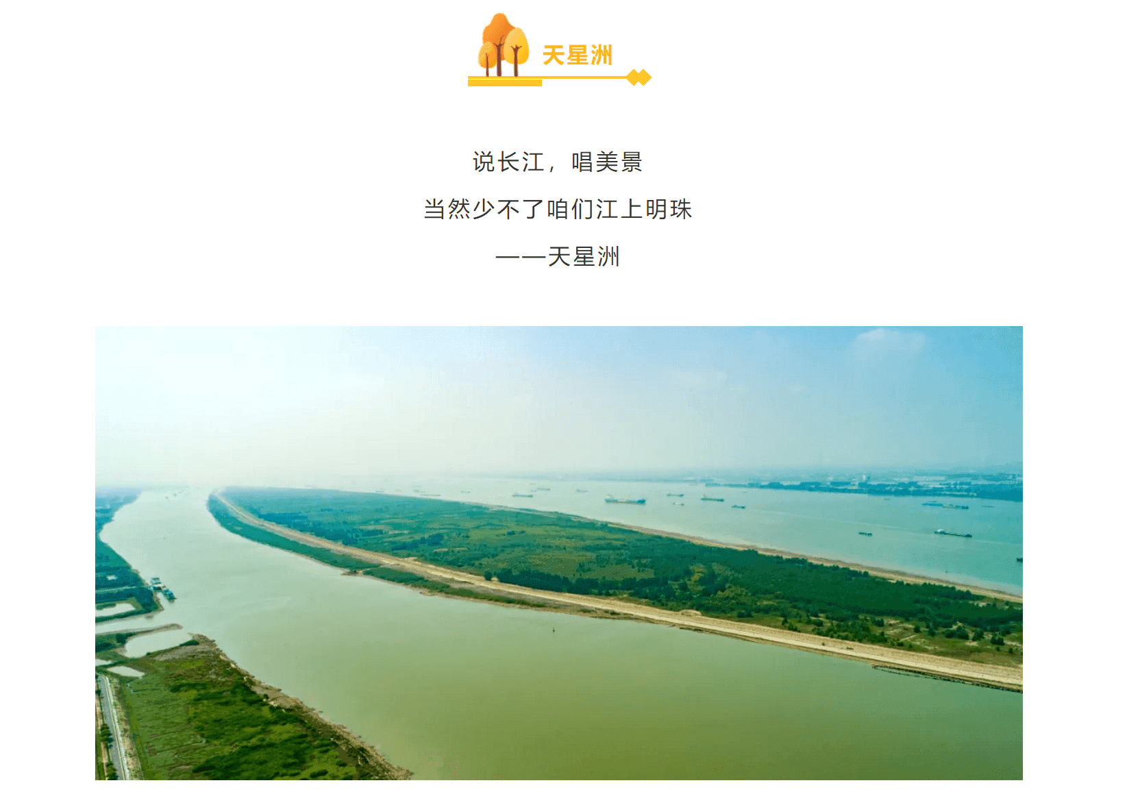 天星洲總面積約為8平方公里(12000畝)。 泰興市原計劃將天星洲建設成港口物流基地,項目從2008年啟動,2012年獲水利部長江委行政許可,2013年被省發改委確定為省首批重點投資項目。為提高長江岸線生態修復水平,我市及時調整規劃思路,擬建江蘇泰興長江天星洲省級濕地公園。擬規劃建設的濕地公園內濕地面積1076.04公頃,占濕地公園總面積的99.13%。今年8月25日,省林業局邀請有關專家組成專家組,一致同意通過了《江蘇泰興天星洲省級濕地公園總體規劃(2020—2024)》,現正在按程序組織申報。