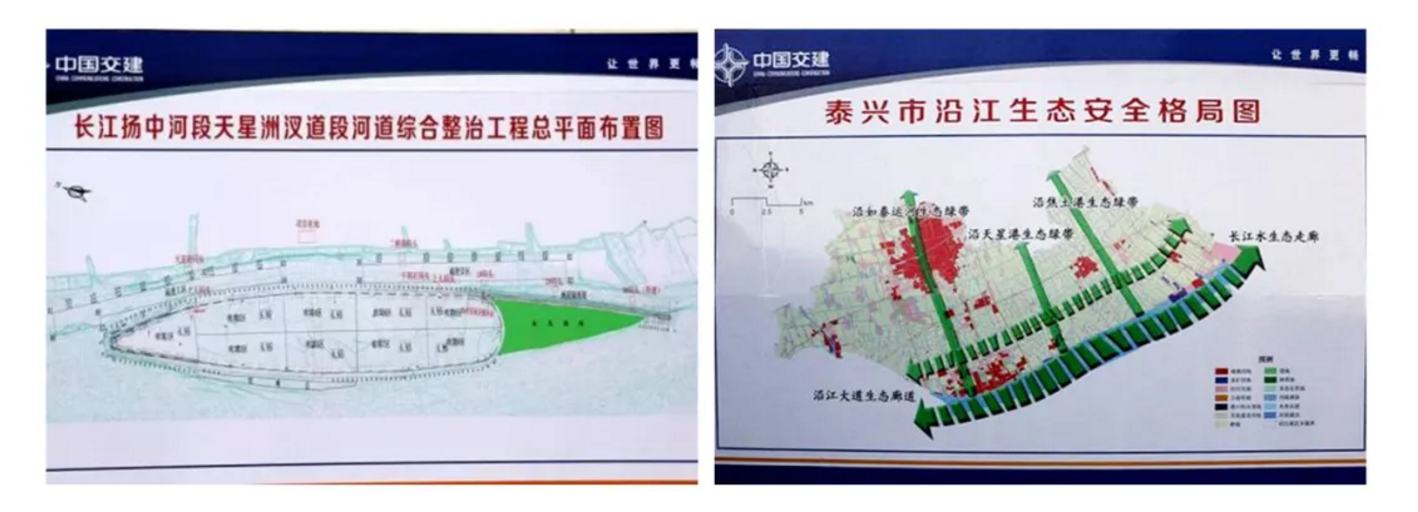 2018年5月,長江濕地和生態廊道工程開工建設,工程北起洋思港,南近六圩港,全長12公里,總綠化面積約280萬平方米。按照“三地”(綠地、濕地、林地)共建、“三效”(生態效益、經濟效益、社會效益)結合的要求,堤外退漁還濕,進行生態修復,與天星洲生態區形成呼應;堤頂按百年一遇防洪要求拓寬改造;堤內重點實施植樹造林、溝通水系、增加小游園,為百姓服務,通過上述措施,著力形成“一帶三區多點”大江風貌(一帶,即12公里生態林帶;三區,即生態產業融合區、生態田園風光區、生態人文體驗區;多點,即重要節點的點綴)。