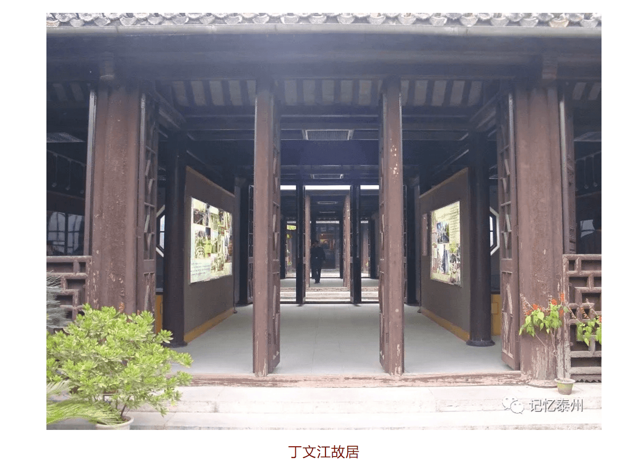 黃橋鎮的米巷長約250 米。中國地質學之父丁文江的高祖于清嘉慶年間擔任押運漕糧的武官,通曉米市行情,叫家人在黃橋開設米行,獲利頗豐,成就一番家業。其他人家也仿效賣米,巷中米店林立,形成行市,遂有米巷之名。清道光年間,丁文江的高祖富甲一方,仿照當時宰相潘世恩的庭院,在米行東首營建宅院,人稱丁萬昌、萬昌花園或丁家花園。丁家花園臨巷面闊9間,分東、中、西三部分,東部為客廳、花廳、花園等,中部為堂屋、書房等,西部為堂屋、臥室等,院中設假山、魚池,栽種喬木、修竹,游廊迂回,曲折相通,是典型的蘇州園林風格建筑。黃橋戰役期間通如靖泰臨時行政委員會、剛解放時泰縣縣政府曾駐此宅院。1980年,改設為新四軍黃橋戰役紀念館。2017年,新四軍黃橋戰役紀念館異地重建,宅院東半部改設為通如靖泰臨時行政委員會舊址紀念館,西半部辟為丁文江紀念館。