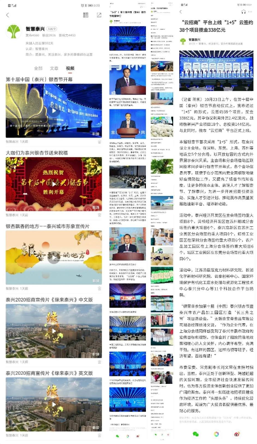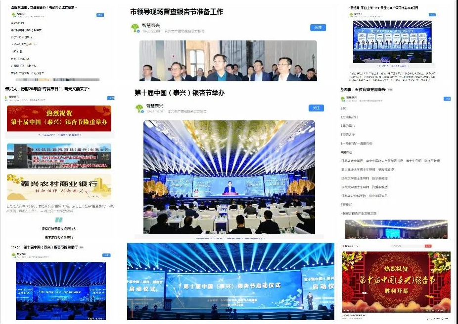 據(jù)不完全統(tǒng)計(jì),連續(xù)5天省級、央視各平臺圍繞中國(泰興)銀杏節(jié)、泰興形象宣傳片等內(nèi)容,陸續(xù)報(bào)道近30條(次),通過圖文、視頻等多種形式,展示了泰興城市形象和發(fā)展成就。