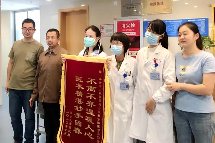為感謝醫護人員給了殷某第二次生命,10月26日一大早,患者家屬就舉著錦旗趕到醫生辦公室,激動的連聲說“謝謝,謝謝”;患者的女兒更是用心,分別在一袋袋小小的餅干包裝上貼上小小的愛心標簽,分別寫上每一位醫護人員的名字和溫暖的話語,表達著不同的謝意。 |