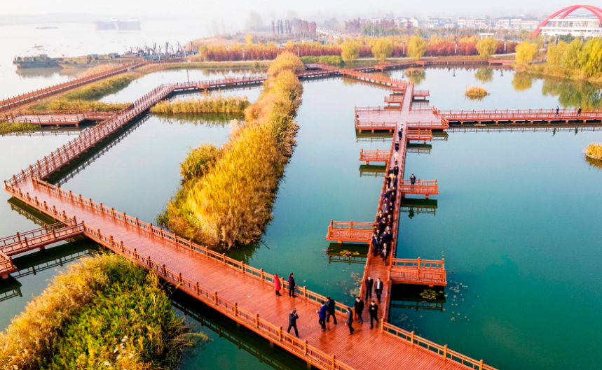 “船廠變森林”“魚塘變濕地”“工廠變公園”“江堤變賽道”,拆除6家小船廠、23個魚塘、53座建筑物和構筑物,關閉小化工等企業20多家,建成12公里長江生態濕地和綠色廊道。累計騰退岸線6.4公里,江堤內恢復濕地3000畝,植樹造林1200畝,并讓江堤“固若金湯”加持“風景如畫”。